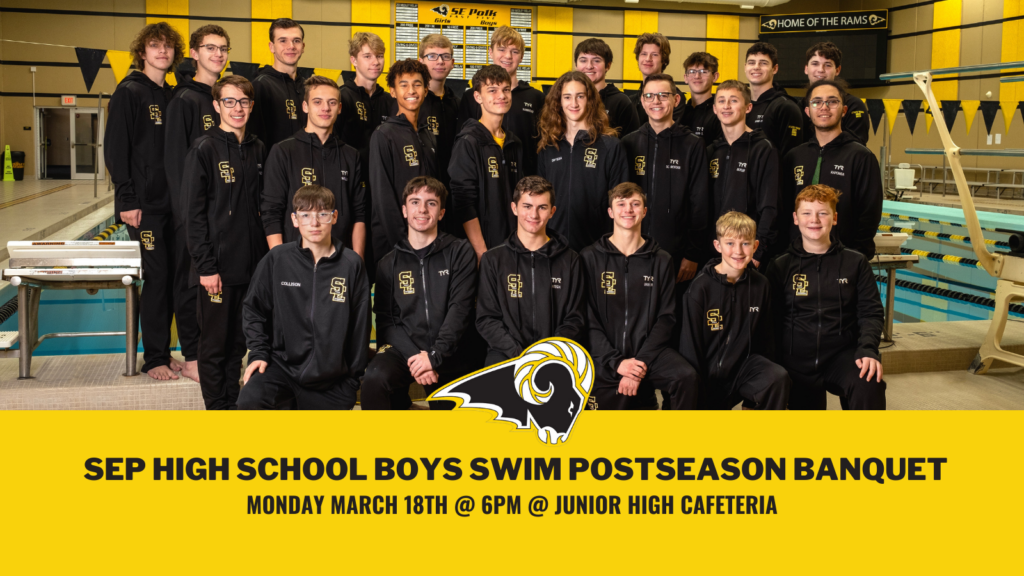 We will hold our postseason high school boys swim banquet on Monday March 18th at 6PM in the Junior High Cafeteria. We will recognize all team members with varsity letters, recognition certificates, academic awards, team awards, and shirts for those making the SEP Top 20 or Fast 5 for the first time. Afterwards, those who wish to put their own records up on the Fast 5 Board can join us at the high school to do so.